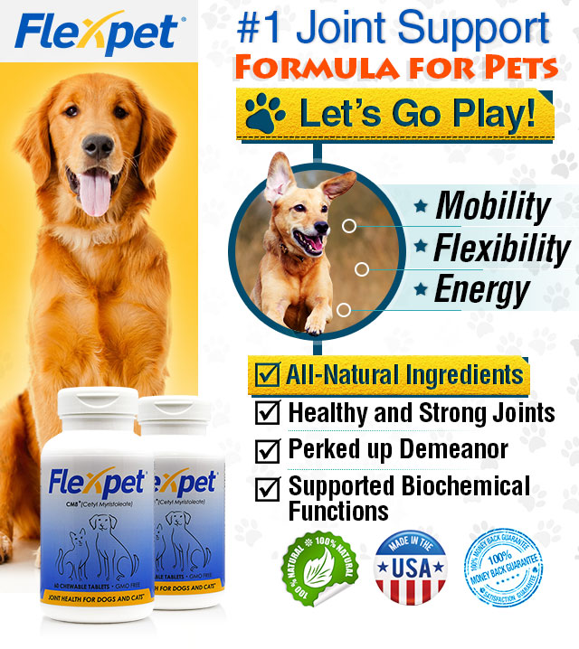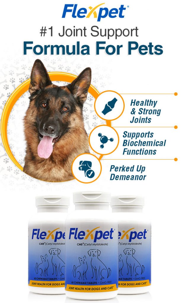 Joint pain & arthritis in dogs and cats is a sad and debilitating condition. Joint pain affects one in five of these pets, and shows its presence in the form of painful joint inflammation. These aches and pain reduce your dog or cat’s enjoyment of life, and therefore wear out our enjoyment of their company. The combination of ingredients in FlexPet with CM8® is specially designed to nourish the joints, support stronger cartilage, help stimulate the lubricating fluid in the joints, and increase total mobility. Flexpet comes in a chewable tablet form that both dogs and cats love.