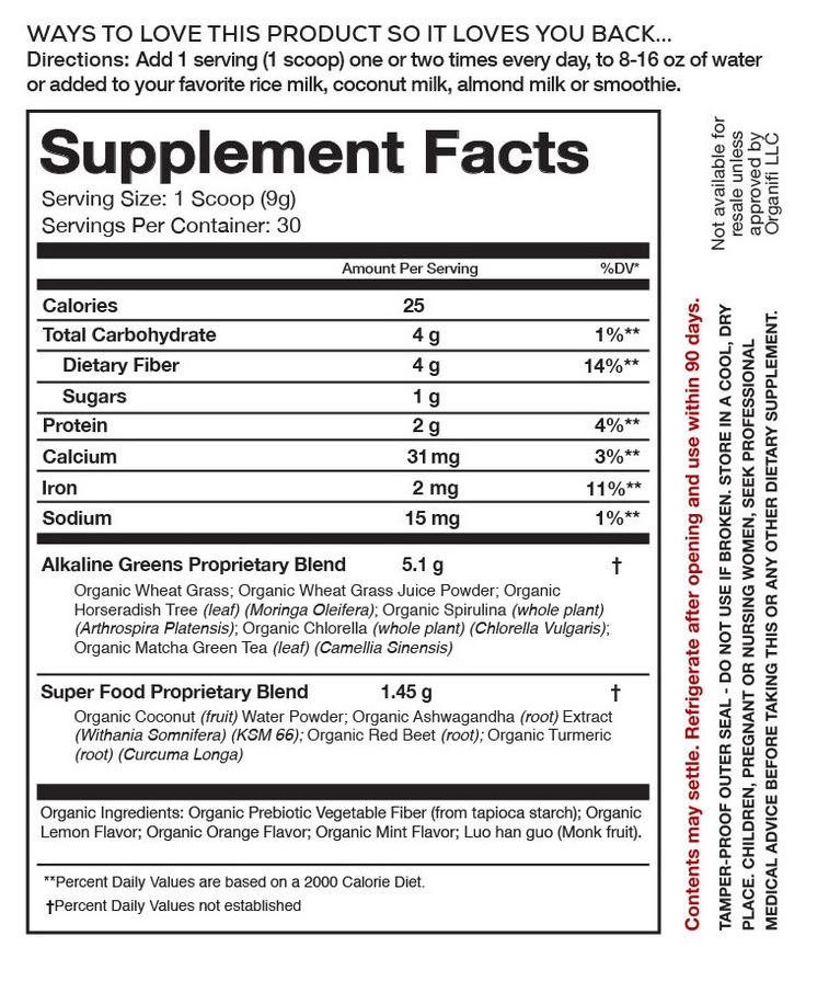 - We can’t allow resale of Organifi products, so empty bottles will be refunded only after sufficient time has passed for a single customer to drink Organifi as directed.